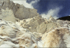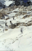 Утро сегодня превосходное. Ничто не напоминает вчерашнее. В 09.00 мы выходим. Идем в кошках, хотя поначалу они не очень нужны. Поверхность фирна покрыта застывшей ветровой рябью. В самом конце, при спуске на ледник вешаем веревку. Весь спуск занял 1.5 часа. Еще за 30 минут мы доходим до ледопада. Здесь снимаем лишнюю одежду и кошки, поскольку, снег уже раскис, любуемся вчерашними достижениями. Все наши следы в ледопаде превосходно сохранились. Проходим ледопад за 01.40. На этот раз приходится поработать. Все вытаяло и видно, что ряд наших подъемных следов проходил по краю больших трещин. Мосты уже ненадежные и приходится их переползать. Идущий впереди Андрей пару раз неглубоко проваливается. Сбежав от седловины Бонингтона за 30 минут, обедаем на моренах. Дует южный ветер. Выходим дальше в 16.00. Пройдя по полностью открытому леднику, переходим на морены правого борта.