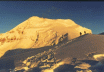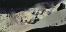 С утра вершины открыты, хотя небо затянуто облаками зимнего типа. Вышли в 08.20. Снегу выпало 20 см. Мороз был недостаточен, чтобы подморозить наст и мы периодически проваливаемся. Верхнее плато ледника оказывается сильно разорванным. Мосты, по которым мы переходим трещины не очень надежные и прохождение этого плато во второй половине дня представляло бы большую проблему. Под нижний ледопад, подпирающий перевальный взлет, подошли в 10.00. Ледопад простой, но приходится повесить 1 веревку перил на крутом участке. Вопреки нашим ожиданиям глубина снегу не убывает. Выше сброса есть несколько коротких участков с лазанием и засыпанная трещина. В 12.15 вышли на верхнее плато ледопада. Отсюда начинаем подъем по неявному контрфорсу. Уклон 35-40-45 градусов. Вперед вырывается Борис. Вскорости понимаем, что пора уже начинать вешать. Снег глубокий. Под снегом лед - идем в кошках. Крутизна возрастает до 60 градусов. До небольшого карниза на перевальном гребне повешено 7 веревок и последняя 8-я повешена уже через карниз. На гребень вышли в 19.00. С 17.00 идем при ветре и снегопаде. Северная сторона - снежный склон крутизной 3540 градусов. Следуя контрфорсу, мы вышли на гребень немного восточнее седловины 5460. Пройдя 200 метров по гребню и, минуя седловину перевала (площадки нет) подымаемся через 20 минут в удобную для стоянки мульду на высоте 5470. Все в той или иной степени вымокли. Ночью открылись звезды. Луна восходит сейчас под утро и мы долго любовались россыпью Млечного Пути и рисунками созвездий.