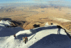 Вдалеке видны вершины Каракорума. Сквозь Кашгарский хребет выглядывает Музтаг Ата. Но над всем этим доминирует мощный южный склон Конгура. B{qnr` 5890. Набрали 420 м. Мы проходим с Андреем вперед по гребню. Непродолжительный спуск выводит в мульду откуда далее уже следует подъем по склону на предвершинное плато Кызылселя. Видны выходы скал на гребне. Вид назад открывает нам пройденный нами путь. Отсюда он выглядит круче, чем на самом деле. Видно как южный склон гребня через 100 метров круто обрывается. Перевальный склон Кызылселя смотрится весьма устрашающе. Погода постепенно портится. Выйти после обеда не удалось. Начинает дуть сильный ветер и портится видимость. Сквозь разрывы в облаках видно голубое небо. Конгур закрылся. Ставим окончательно лагерь.