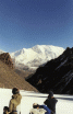 Утро ясное. Над гребнем висят небольшие тучки. Мороз - -10 градусов. Выход в 08.00. Сначала по террасам правого борта, затем переходим ручей и выходим на моренные поля Кокселя. Отсюда начинается хорошо маркированная тропа, которая нас доводит до слияния ручья с рекой Яманджар. После слияния по правому борту идет хорошая тропа. До моста доходим за 3.5 часа (от лагеря). Сегодня замечательная погода и виды вокруг. Но нам надо вниз. За час с небольшим доходим до моста через Кенгшибер-Су. Воды в реке заметно прибыло. Идет видимо интенсивное таянье. Киргизы на этот раз не досаждают. Видимо, привыкли к нам. Перекусив, мы отправились с Андреем к озеру Каракуль. Перевалив через холмы, оказываемся на берегу. Там обнаруживается женщина с детьми, собирающая кизяки в пластиковый мешок. Завидев нас, они бегут к мосту через протоку и усаживаются на другом берегу в ожидании 4 юаней. Мы разуваемся и обходимся без моста. Те обескураженные идут в свое жилище. До юртового лагеря дошли за 01.20. По сравнению с 1998-м сувениры уже не раскладывают на тряпках прямо на земле, а выстроены специальные ларьки. Саша, же, как нам сказали, сегодня уехал вниз. Мы покрутились, купили сахару, рису, чаю и китайской водки, оставили Саше записку и ушли. В лагере же тем временем шли интенсивные торговые переговоры. Однако стороны остались при своем. Киргизы не хотят платить за веревку и командирские часы приемлемую цену. Ну не хотите и не надо.