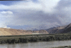 Ночью шел дождь. Под утро высыпал снег. Все вокруг было скрыто в тумане. Буйство стихий прекратилось лишь когда мы окончательно собрали рюкзаки. За 30 минут дошли по распадкам и кускам троп до кишлака Шивахода. Виден большой кишлак и на левом берегу. От кишлака пошла мощная тропа вниз, к мосту через Кенгшибер-Су. Весь переход до моста занял 2.5(3) часа. Мост, к счастью не снесло. Мы перешли на другой берег. Сели на рюкзаки отдохнуть. К мосту подъехал киргиз на ослике. Слез и стал приглашать осла последовать за ним. Тот ни в какую. Тянет ослик упирается. На помощь бросилась почти вся группа. 4 человека после долгих попыток практически перенесли осла на руках на тот берег, прикрыв ему глаза. Отойдя от моста метров на 100 вверх мы стали на берегу рядом с ручьем фильтрующимся из под берега. Нас быстро обступили киргизские дети. Ребята ушли за заброской. Я разговорился с 15 летним пареньком по имени Мухуи, пасущим поблизости баранов. Он оказался первым киргизом, предложившим айран и лепешку бесплатно. Через 1.5 часа пролился мелкий дождик. Вскорости после этого пришли и ребята, наткнувшиеся на Сашу с нашей заброской. Еще вчера он был в Урумчи. Тем временем мимо нас по мосту проходит большой караван венгерской экспедиции на Конгур-Тюбе. По слухам - они достигли высоты 6500. Ветрено и пыльно. Высота 3670.