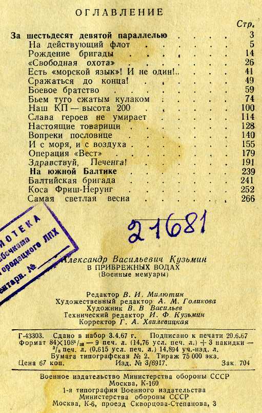 К89 В прибрежных водах. М., Военное издательство, 1967.