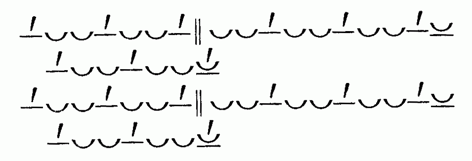 стопа в три музыкальных единицы (моры) сочетаются со стопами в четыре таких