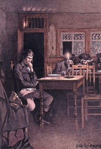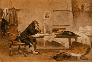 Трудно жилось молодому офицеру. Большую часть жалованья он отсылал матери, оставляя себе только на самое скудное пропитание, не позволяя себе ни малейших развлечений. В том же доме, где он снимал комнату, помещалась лавка букиниста, и Наполеон все свободное время стал проводить за чтением книг, которые давал ему букинист. Общества он чуждался, да и одежда его была так невзрачна, что он и не хотел и не мог вести сколько-нибудь светскую жизнь. Читал он запоем, с неслыханной жадностью, заполняя заметками и конспектами свои тетради.