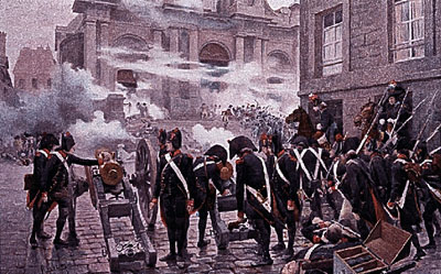 Наступил исторический день - 13 вандемьера, сыгравший в жизни Наполеона гораздо большую роль, чем его первое выступление - взятие Тулона. Мятежники двинулись на Конвент, и навстречу им загремела артиллерия Бонапарта. Особенно страшным было избиение на паперти церкви св. Роха, где стоял их резерв. У мятежников тоже была возможность ночью овладеть пушками, но они упустили момент. Они отвечали ружейной пальбой. К середине дня все было кончено. Оставив несколько сот трупов и уволакивая за собой раненых, мятежники бежали в разных направлениях и скрылись по домам, а кто мог и успел, покинул немедленно Париж. Вечером Баррас горячо благодарил молодого генерала и настоял, чтобы Бонапарт был назначен командующим военными силами тыла (сам Баррас немедленно сложил с себя это звание, как только восстание было разгромлено).