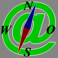вертикально стрелка компаса, указывающая на символ "@" Вдоль строки