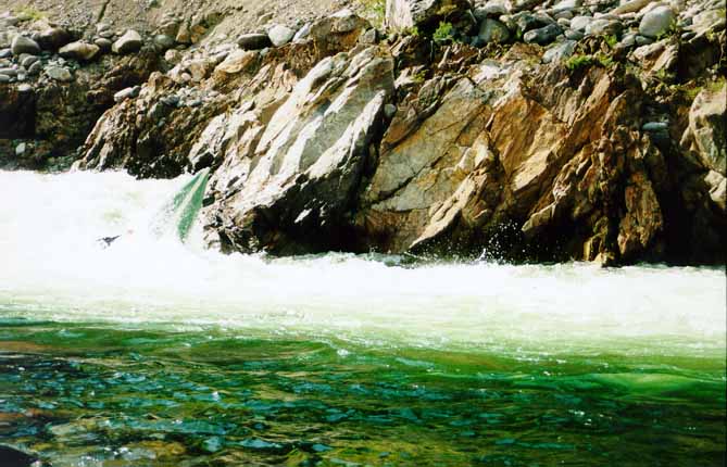 Митька не разогнался как следует. В бочке его тормознуло, и он вылетел из пены на кормовой свечке. В этом состоянии Митяя перевернуло вниз головой и положило. Митька отстрелился (слава богу, уже после мерзкого улова). Самосплав длился недолго. Митяя отловил кат, а его каяк - Мачулин.