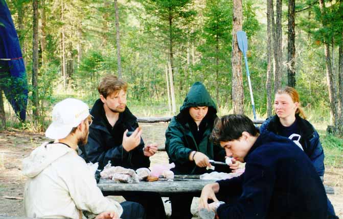 Около минерального источника Халун-Ухая мы встретили экспедицию бурят-ботаников из Улан-Удэ. Недалеко от них мы и остановились на ночлег. Попробовали ловить хариуса в Сенце, но неудачно. Вечером к нам на костер пришли три девушки-бурятки из экспедиции. Они жили там все лето и изрядно соскучились по общению. За непринужденной беседой незаметно пролетело 3 часа.