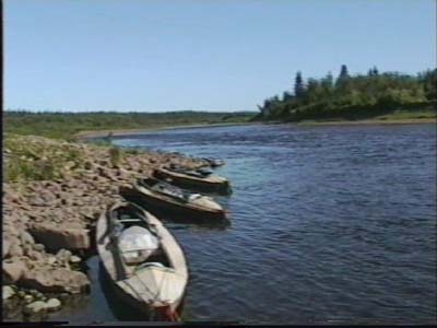 правом по ходу берегу, на конце косы в островах. Обогнали двух старичков. С ними разговаривала
