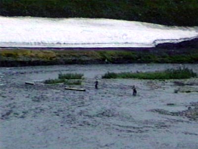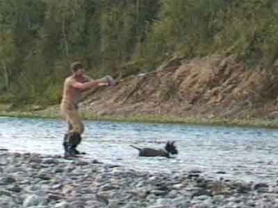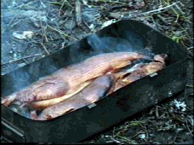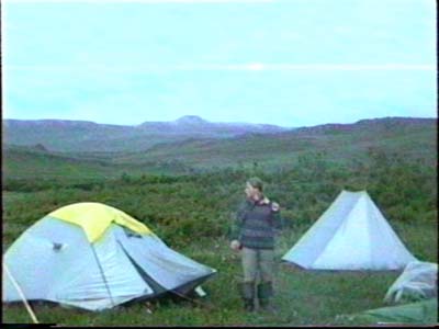быстро разбежались по палаткам, а Коля поймал первого хариуса (мелкий). Его засолили.