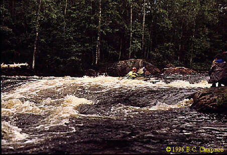 Порог No32 (Iб, 100 м). Сходу. Через 5 мин -- мелковатый перекат и через 100--150 м после него --
