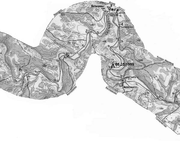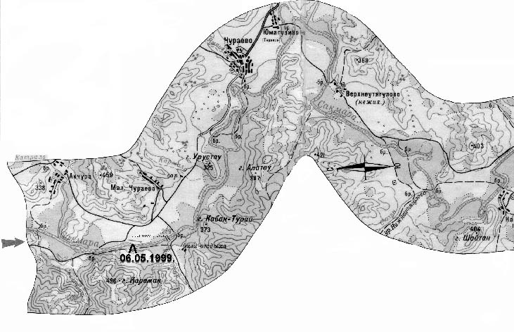 описание прохождение группой маршрута". Кроме этого, ниже деревни Мал. Чураево при несколько большем уровне воды, нежели при совершении данного похода, река идет через лес и в некоторых местах может быть сложно остаться в главном русле.