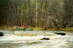 Проход шивер в центре русла. Слив у большого камня проходится ближе к левому берегу, затем сразу обход камня справа. Отдельная разведка первой и второй части. У шиверы за большим камнем - страховка. |