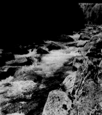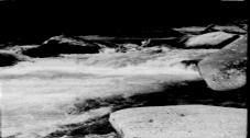 полуобливным камнем. Справа от камня идет прямая плотная струя,