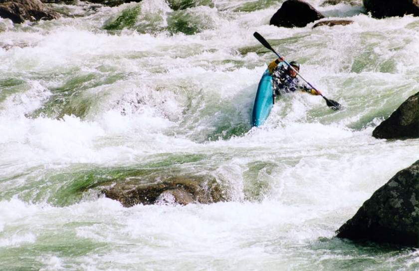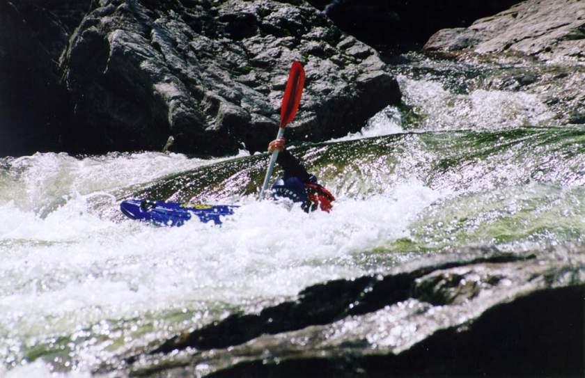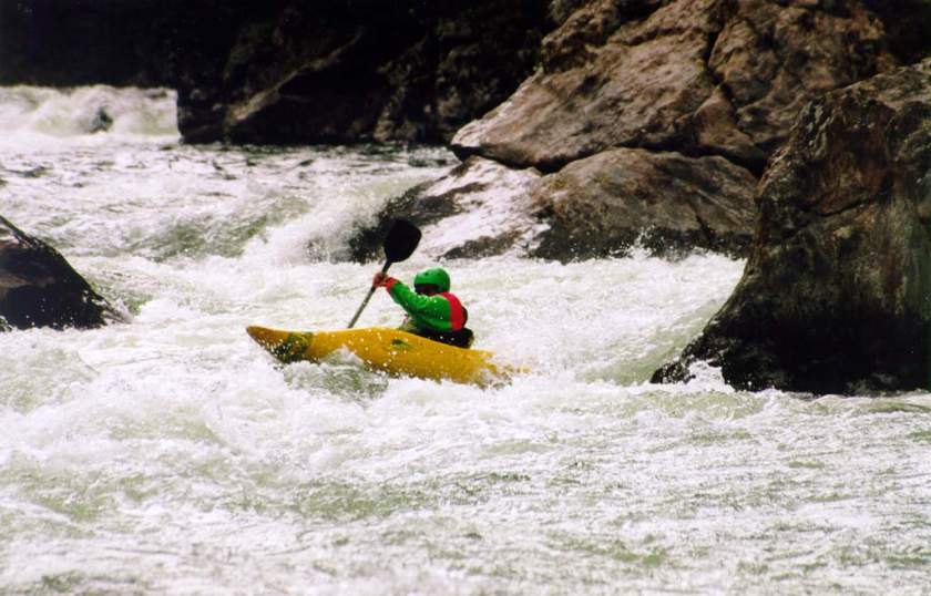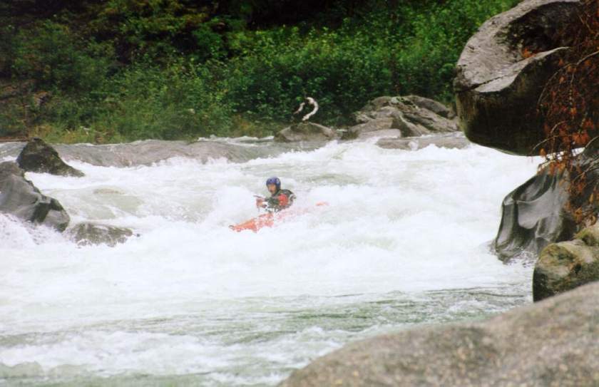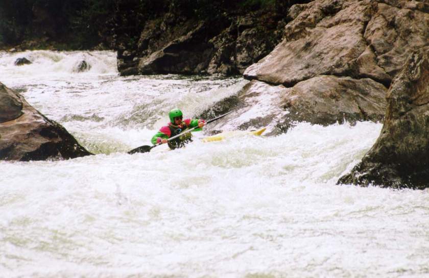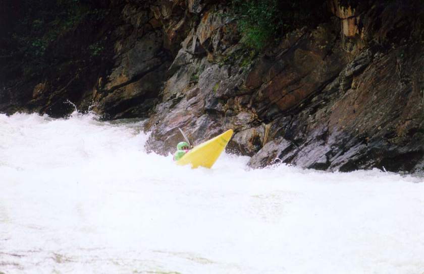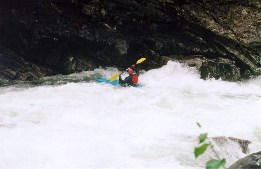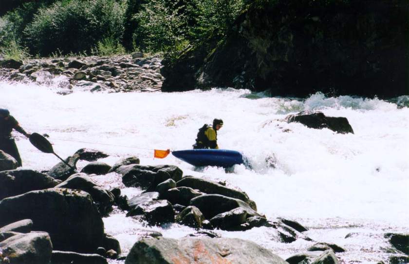 спасконцом внизу порога, далее только активная страховка каяками.