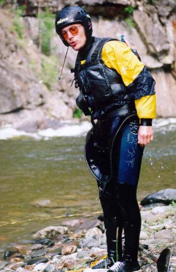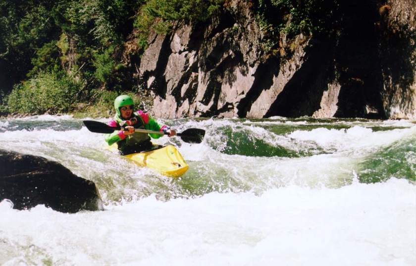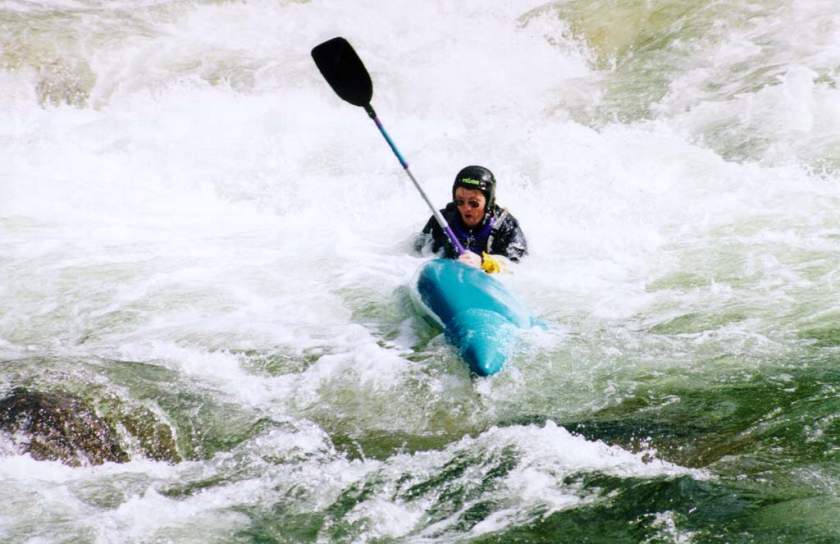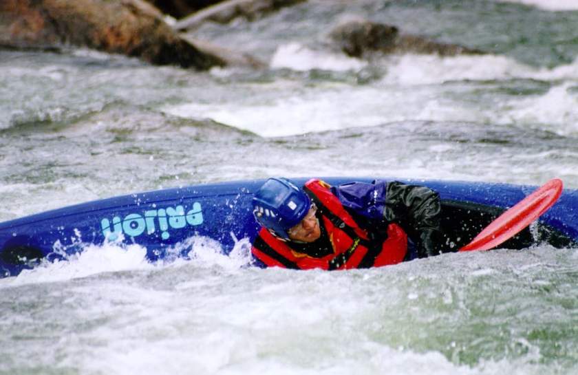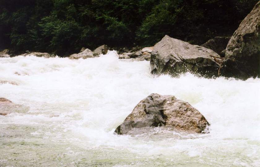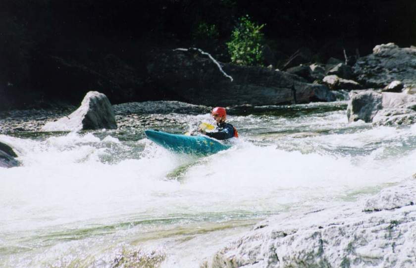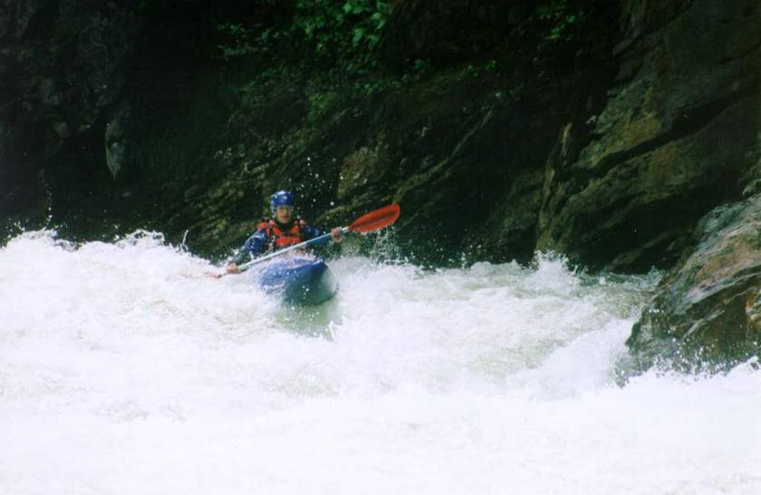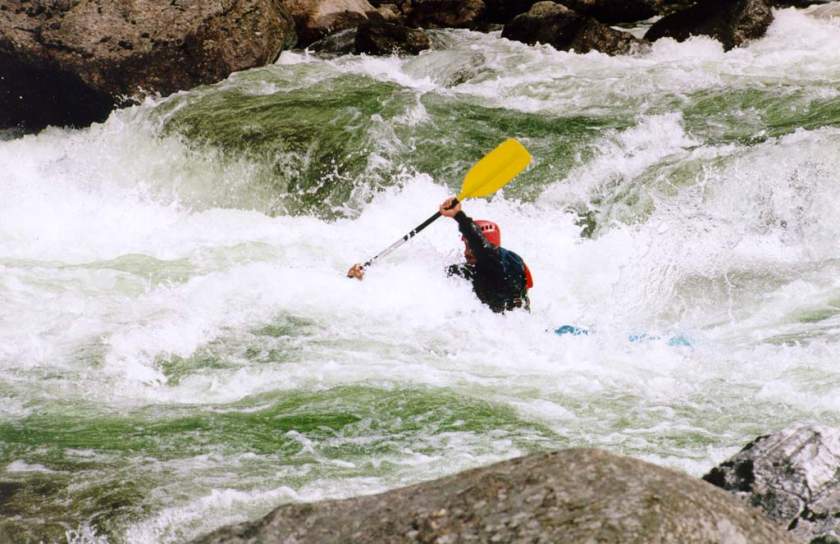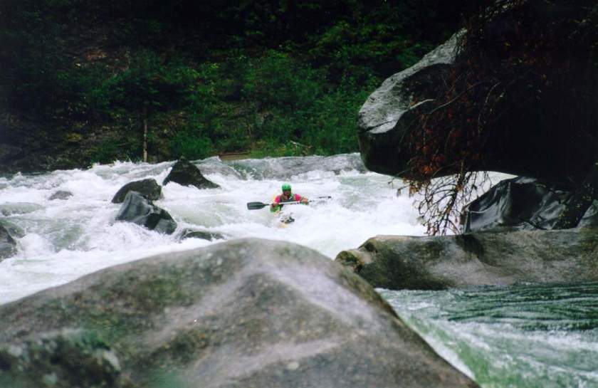 спасконцом внизу порога, далее только активная страховка каяками.