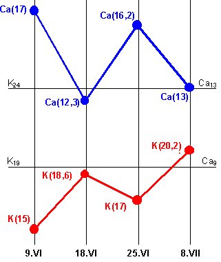 Произведенные в это время определения "K" и "Ca" показали следующее: