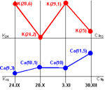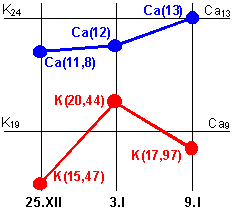 Изменения величин "K" и "Ca"